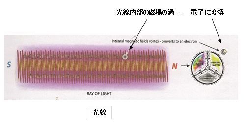 原則として、光線は根源の物質磁場から強度を得ている。これが光が質量をもったエンティティではなくエネルギーとして見られる理由だ。光は異なるプラズマ磁場の強度で出来ていて、単一の磁場構造を持っているわけではない。