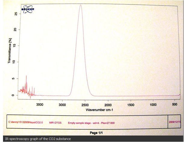分光器による測定の結果は、この物質がCO2の特性を持つことを示している。