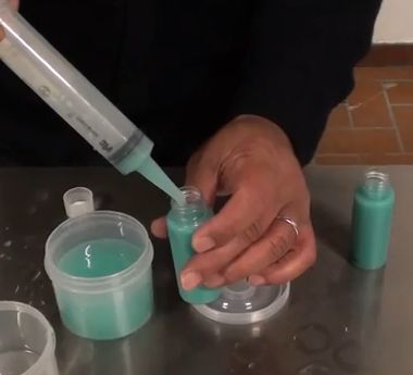 Step3: 残ったガンズと希釈された水を蒸留水に混ぜる。
